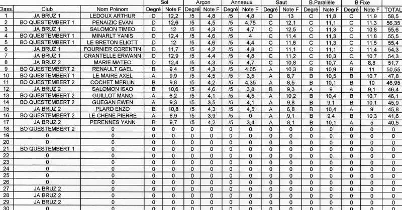 voici les résultats par équipes et en individuel